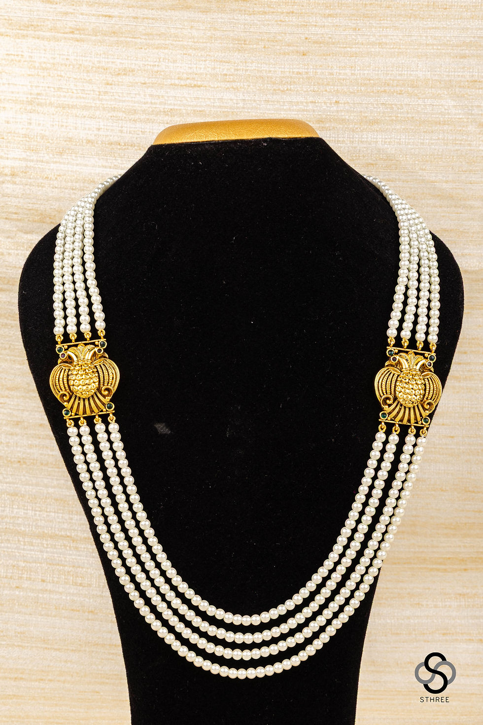 Four liner pearls with gandaberunda mogappu